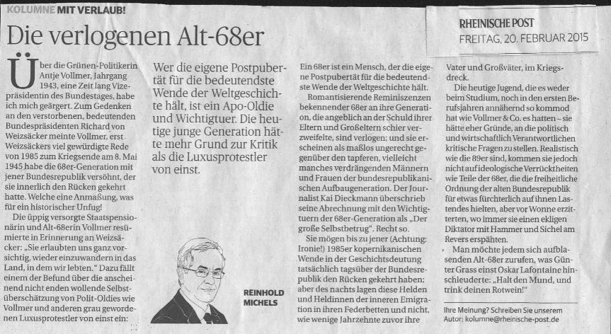 Die verlogenen Alt-68-er, Rheinische Post vom 20.2.2015