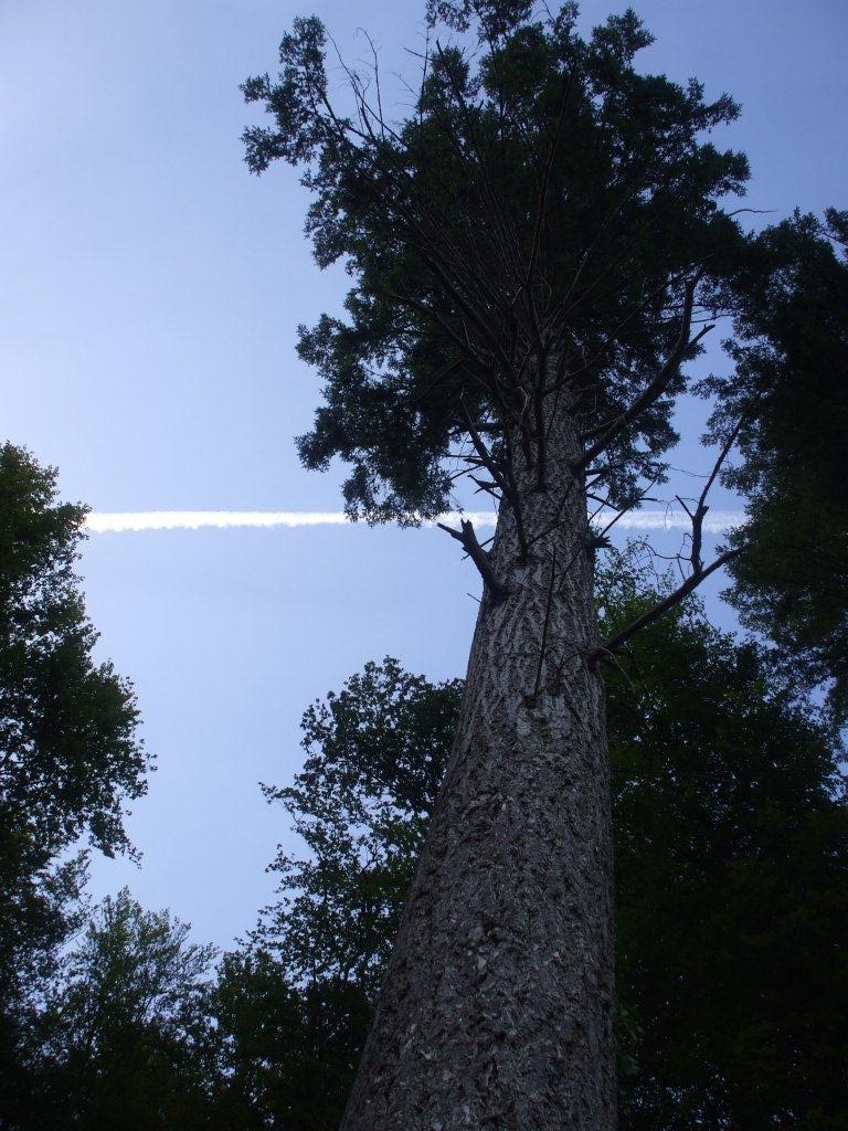 Die Douglasie ein majestätischer Baum: Das größte lebende Exemplar in unserem Land ist eine Douglasie von 62 Metern. Sie ist schnellwüchsig, bindet somit auch fix viel von dem bösen CO² und kann obendrein ein Alter von über tausend Jahren erreichen! Und schon nach hundert Jahren hat sie der Luft soviel Kohlendioxyd entzogen wie ein durchschnittlicher PKW in seinem ganzen Leben ausstößt. Zudem ist Douglasienholz als dauerhaftes Nutzholz vielseitig verwendbar und geschätzt. Im Gegensatz zur Buche, die leider zumeist als Brennholz im Kamin verfeuert wird.