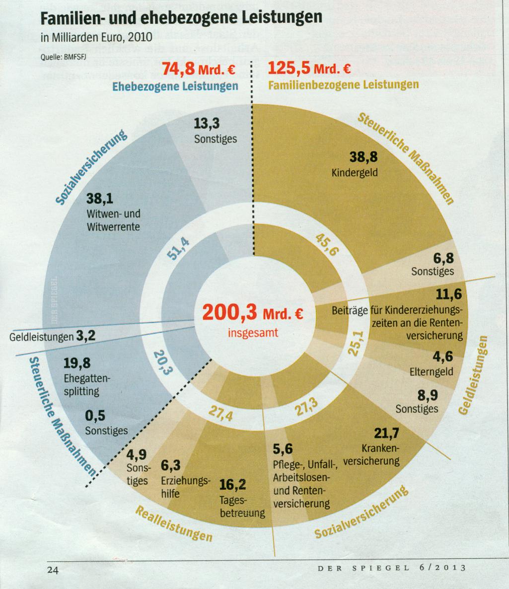 Der Spiegel, jene Hamburger Life-Style-Illustrierte mit dem pseudo-intellektuellem Anstrich, hat ein neues Feindbild entdeckt: Die Familien. Denn angeblich bekommen die zu viel Geld, nämlich 200 Mrd. Euro.