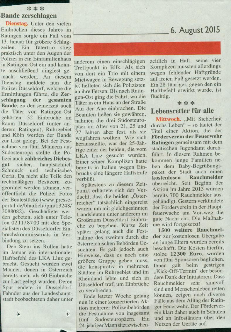 Unser Käseblatt brachte eine gute und eine schlechte Nachricht. Die gute zuerst: Unter der Überschrift „Bande zerschlagen“ wird zu den stark gestiegenen Wohnungseinbrüchen gemeldet: „Ende letzter Woche gelang nun in einer konzertierten Aktion mehrerer Polizeibehörden die Festnahme von insgesamt Südosteuropäern.“ Und nun die schlechte: „Ein 24-jähriger Mann sitzt zwischenzeitlich in Haft, seine vier Komplizen mussten allerdings wegen fehlender Haftgründe auf freien Fuß gesetzt werden.“ So steht es im Text.