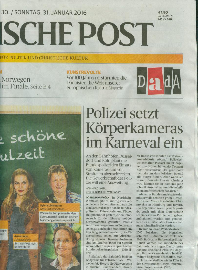 Den Polizisten in unserem Bundesland NRW wird weiterhin von der rotgrünen Landesregierung das Mitführen dieser Kameras zur Beweissicherung bei Straftaten verweigert. Auch im Straßenkarneval und trotz der unappetitlichen Ereignisse in der Silvesternacht.