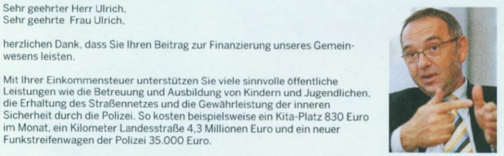 Den Beipackzettel zu meinem Steuerbescheid wollte ich nicht auf mir sitzen lassen. Nachfolgend meine Antwort an den Herrn Minister:
