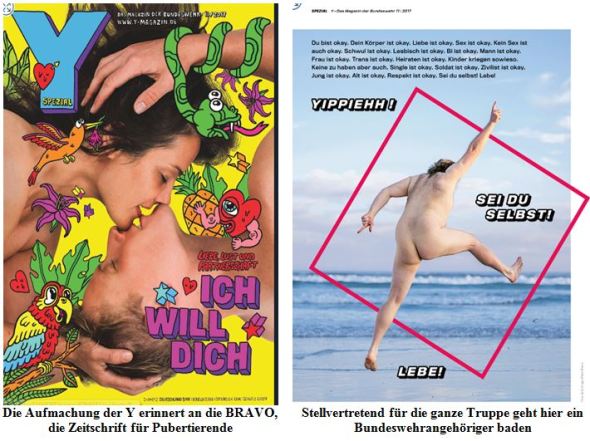 Wenn Sex das alles beherrschende Thema ist, dann darf die Leyen-Truppe nicht abseits stehen. Y, die Zeitschrift der Bundeswehr, widmet dem Thema eine komplette Ausgabe mit über hundert Seiten: