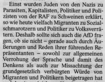 Veröffentlicht: 13. Juli 2019 Abgelegt unter: Leserbriefe an die FAZ, Tagebuch Hinterlasse einen KommentarIm Rahmen der Leserbriefdebatte in der FAZ um eine „Mitschuld“ der AfD an dem Mord am Regierungspräsidenten Lübcke äußerte sich ein Leser wie folgt und forderte damit meinen Widerspruch heraus: