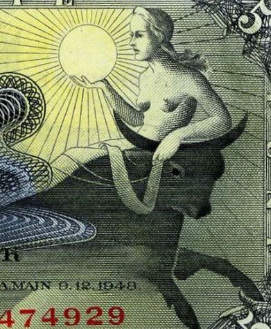 Erwähnen wir noch „EUROPA“, jene mythische Frauengestalt, die von Zeus entführt wurde und der Sage nach unserem Kontinent den Namen gab. Die Älteren mögen sich noch an den alten 5-DM-Schein erinnern; für mich eine der schönsten Darstellungen dieser Legende: