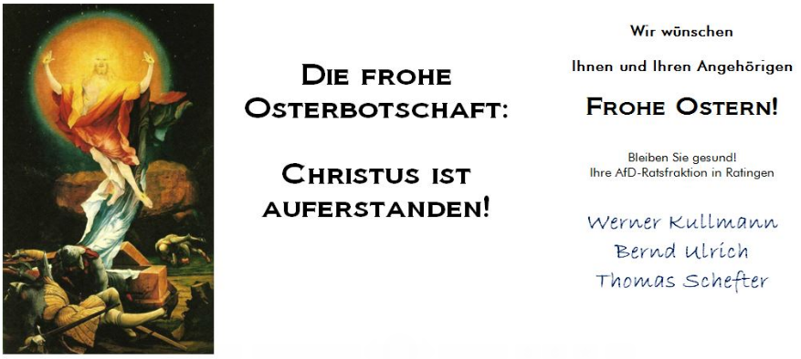 Logisch, daß die Ratinger PARTEI-Genossen dem folgsam nacheifern. Und so nutzten sie unsere Osterbotschaft als Vorlage für eine eigene Blödelei: