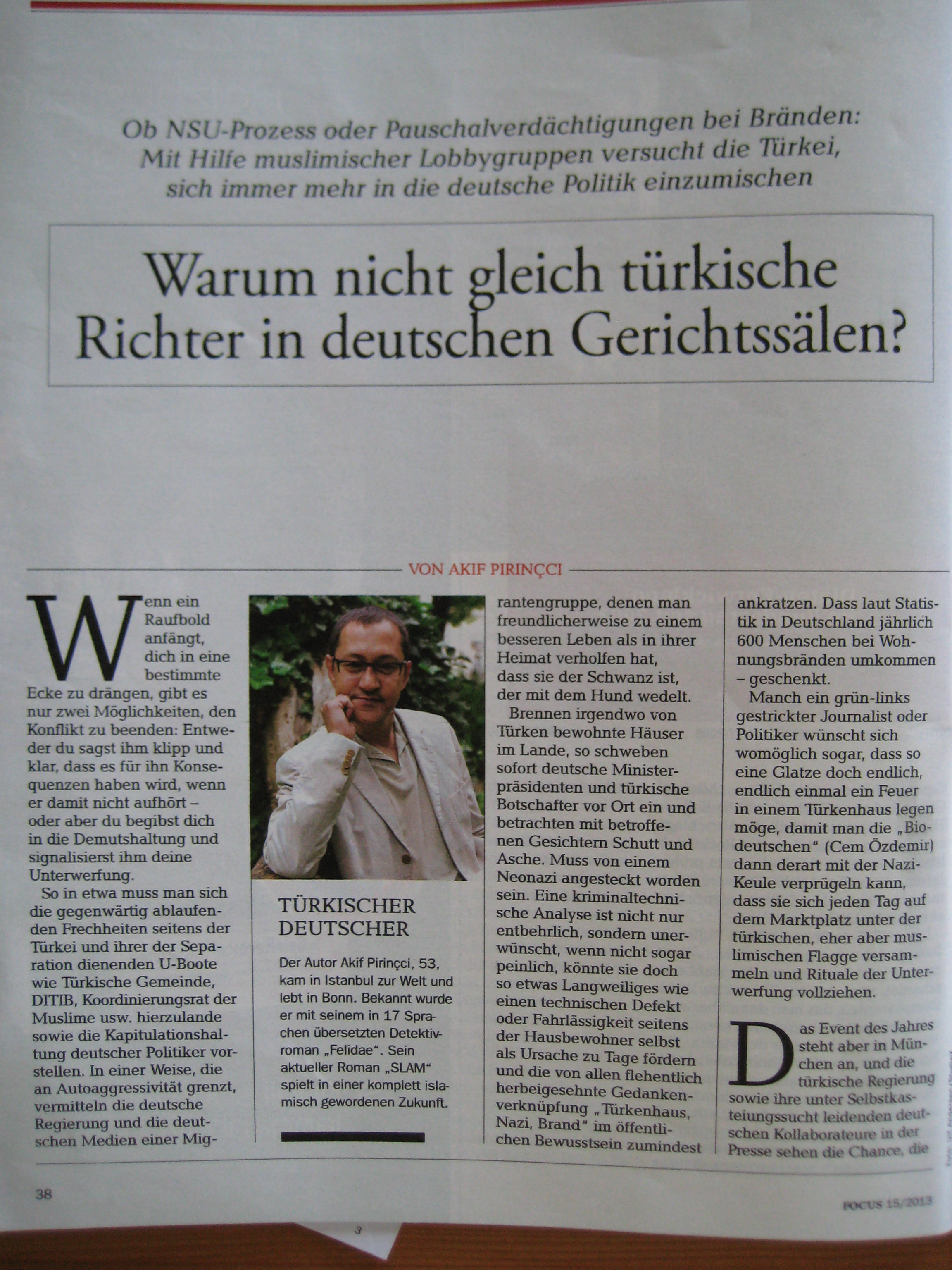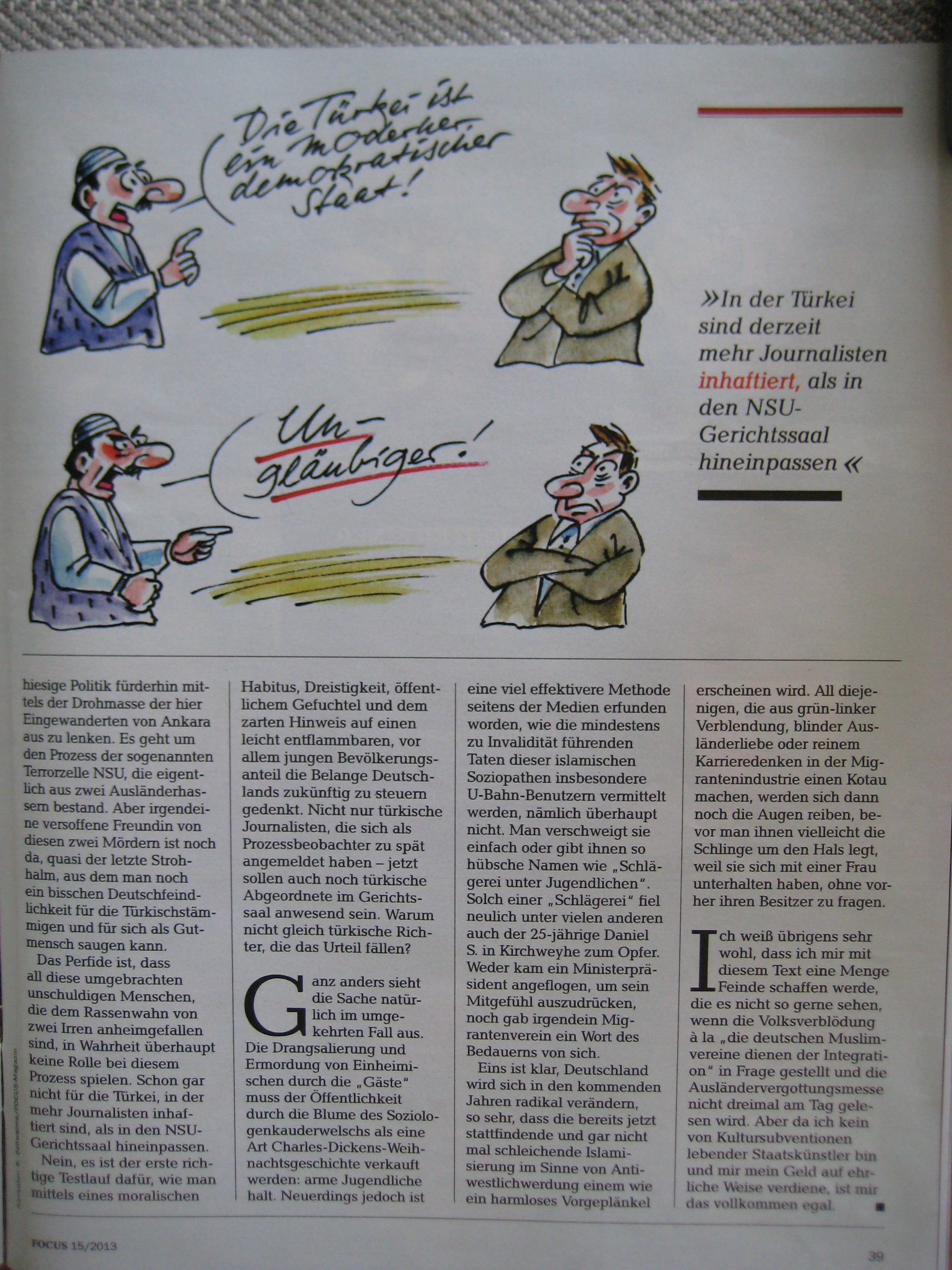 Hier der Wortlaut des Artikels von Akif Pirinçci in der Print-Ausgabe des Focus vom 8.April 2013: