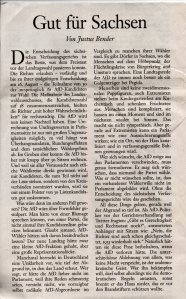 ich staunte nicht schlecht, als ich mir letztens die Frankfurter Allgemeine Sonntagszeitung zur Gemüte führte. Schreibt doch ausgerechnet Justus Bender unter der Überschrift „Gut für Sachsen“ scheinbar positiv zum für die AfD günstigen Ausgang vor dem sächsischen Verfassungsgericht. Dabei kennen wir doch Justus Bender als den lautesten Kläffern von allen auf die AfD abgerichteten Wadenbeißern in den FAZ-Redaktionsstuben. Gemach! Denn nach dem üblichen Vorgeplänkel geht es dann munter weiter im Text, ich zitiere: „Menschen sind keine zweidimensionalen Pappfiguren, auch Extremisten stehen beim Kindergartenfest am Kuchentisch…Aber gerade auf Extremisten kann ein Parlament wie eine Ausnüchterungszelle wirken; wie ein Ort, wo der Hass kanalisiert und in verfassungsgemäße Bahnen gezwungen wird.“ – Ein frommer Wunsch. Denn wir alle kennen die hasserfüllten Beschimpfungen aus den Reihen der Altparteien. „Dödel, Pack, Abschaum, Rattenfänger, Schande für Deutschland, Nazis“ usw. um nur einige der parlamentarischen Kraftausdrücke zu benennen, mit denen…